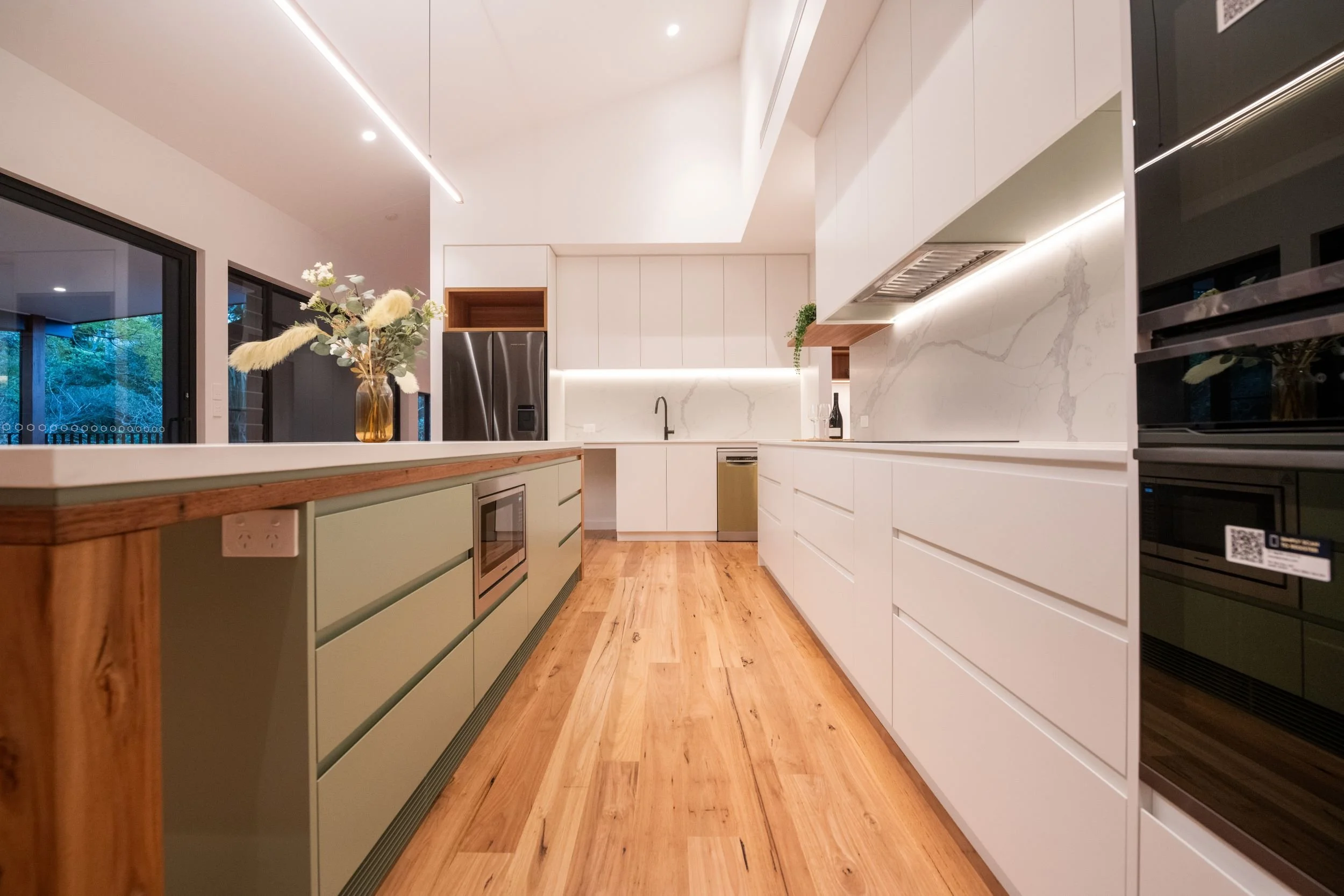 NuVision Building was recently engaged to construct a new home in Glenorie for a growing family. The home includes all the requirements to create a comfortable, functional living space with four bedrooms, office, separate toilet, ensuite off main large bedroom, large double garage and an open plan kitchen/dining/lounge room. The lounge/dining leads out to a large alfresco area which takes advantage of the bush views on the acreage block.