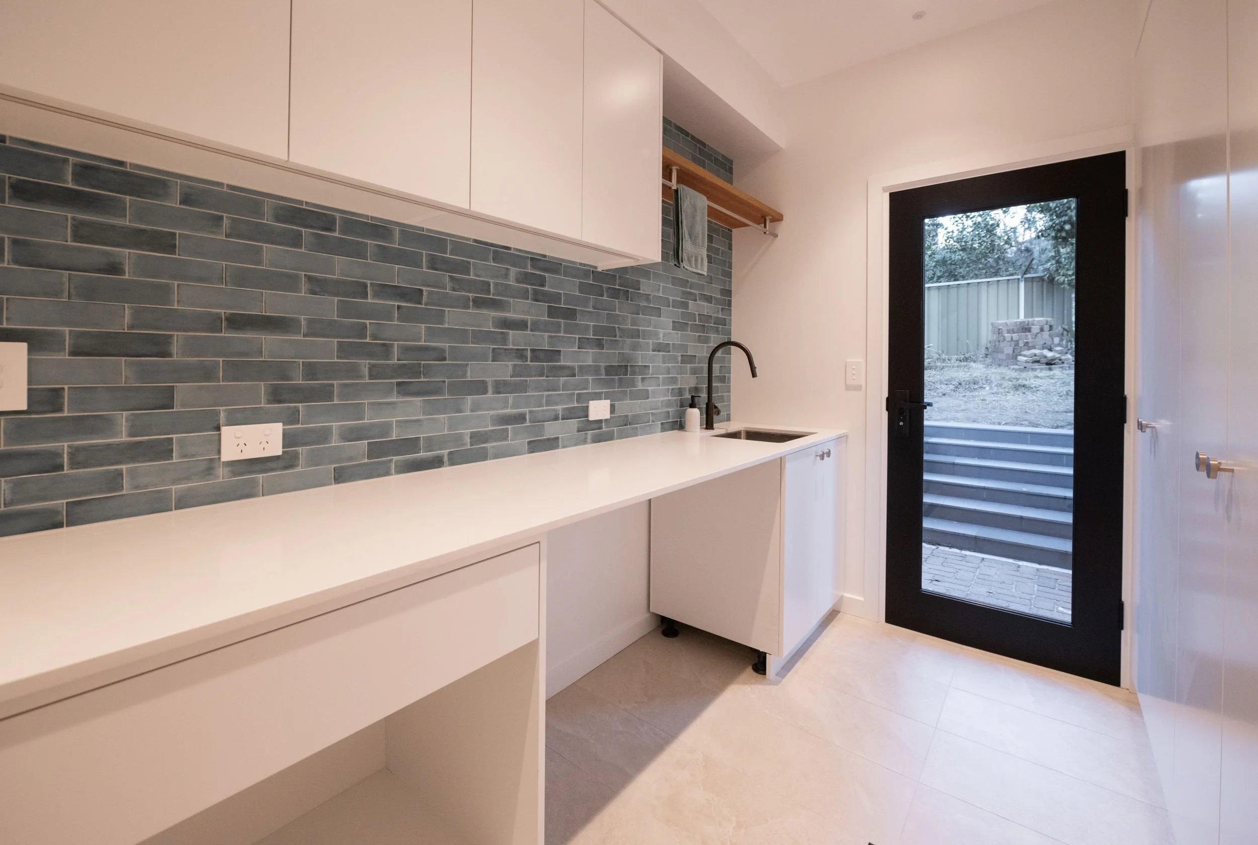A first floor addition to a charismatic 1970’s brick veneer house in Baulkham Hills in Sydney’s leafy Hills District. The external cladding used was Hebel aerated concrete panels, rendered and painted. These panels have excellent acoustic and thermal insulating properties. We installed a beautiful hardwood staircase which seamlessly connects the existing downstairs with the new living area and main bedroom with en suite above. The first floor addition also has a generous walk in wardrobe which is a real feature. We installed structural steel beams to accommodate the new rear balcony that leads off the lounge room. This balcony, also serving as part of the roof for downstairs, needed to be carefully constructed and waterproofed to ensure years of trouble free living for the clients. The balcony offers a private, tranquil retreat overlooking the lush garden.